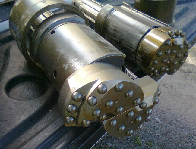 Herramientas para perforación en suelos arenosos y/o con canto rodado sin cohesión, consiste en utilizar herramientas concentricas que al trabajar toman un mayor diámetro de perforación y permiten bajar por medio de una zapata los tubos de maniobra, y luego retirar el martillo y broca por el interior del casing.