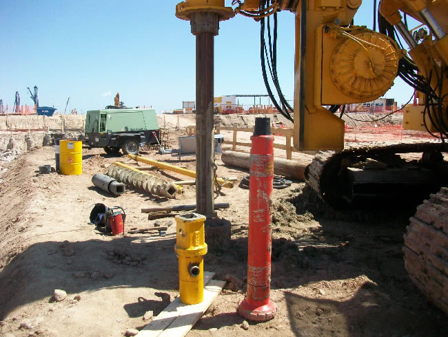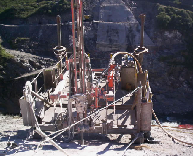Martillos de fondo utilizados para perforaciones de anclajes tipo « Ischebeck », con todas las inclinaciones posibles. Las injecciones de impermeablización y anclajes relizadas por medio de cabezas de injección tipo swivel.