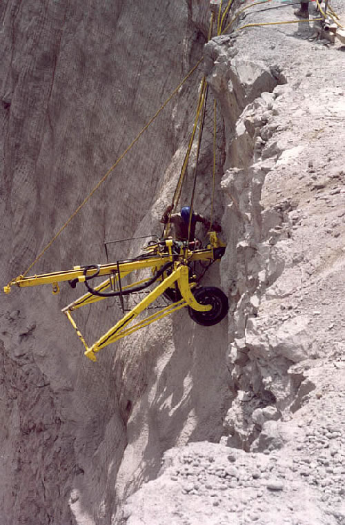 Para corte de bloques en canteras de marmoles y granitos, por medio del encuentro exacto de perforaciones verticales y horizontales, para luego pasar el hilo diamantado.